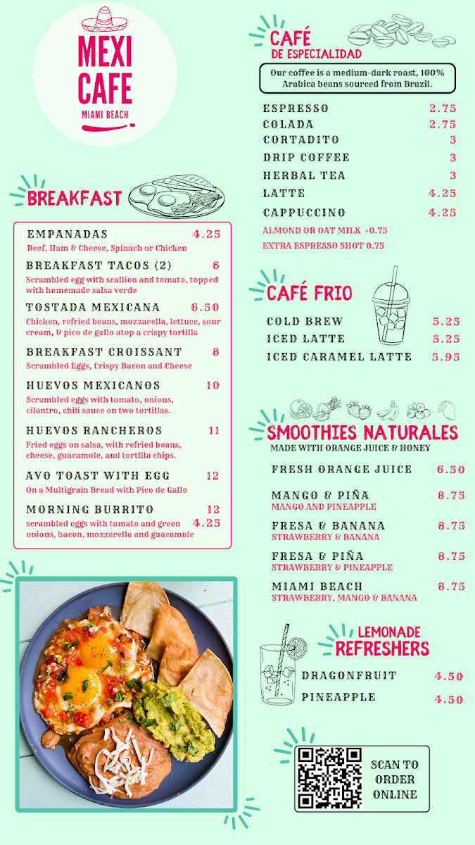 Welcome to Mexi Cafe, a hidden gem in the vibrant heart of Miami Beach, located at 6300 Collins Ave. This delightful eatery specializes in unforgettable flavors and fresh ingredients that captivate the palate.